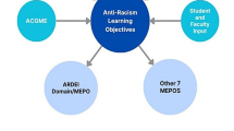 Team composition included JS who identifies as a racialized cis-male, and who is a physician in practice as well as a PhD scientist in education. The study was conceptualized by JS who sought a deeper intersectional analysis consistent with the lived experience of working with racialized individuals in both clinical and educational contexts. HG is a medical social advocate, self-identifying as belonging to a religious minority and a former immigrant. She is combining her passion for innovation, leadership, and scholarship, the creation of tools, processes and advocacy for learners, patients, families, informing organizational changes. AB is a white woman and a PhD-trained medical education scholar interested in social accountability. She held recent roles as a staff member, learner, and faculty member at two Canadian medical schools, and throughout the analysis was mindful of how her perspectives were grounded in those of a learner due to personal and professional proximity to this group. WH is a clinician, administrator, and researcher with expertise in critical care and discourse analysis. As a white passing male who is nevertheless a member of a religious and cultural minority, he has experienced the “insider-outsider” effect and most closely associates with the identity of a tempered radical (Meyerson & Scully, 1995). SR is a senior medical educator and researcher in equity, diversity, and inclusion in health professions education. He considers himself racialized and as belonging to a sexual minority in the Canadian context. In his critical reflexivity as a researcher on this project he has sought to be open about his status as an “insider” engaging in critical work, and as a person who has experienced the imperfections of the academic work environment firsthand. .