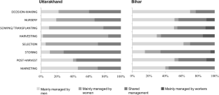 This work was carried out in collaboration with Bioversity International and the Basque Centre for Climate Change. We would like to thank Dr. Prem Mathur and the entire staff of Bioversity International, India for their logistical support and assistance with data collection. We would like to acknowledge the farmers from villages in Uttarakhand and Bihar who participated in the research, as well as expressing our gratitude to Dr. Sahai and colleagues from Gene Campaign, Dr. Solanki and the staff of Rajendra Agricultural University at Pusa Campus in Bihar staff at VPKAS, Almora and staff at the NBPGR Regional Station in Bowali, Uttarakhand for their support in undertaking the field work. I would especially like to thank Ms. Puja Bisht, Ms. Kamini Kumari, Ms. Marya Zabeen and Mr. Avinash Kumar for their dedication during survey interviews and focus group discussions. Funding for this research was provided by the CGIAR Research Program on Climate Change, Agriculture and Food Security (CCAFS), which is carried out with support from CGIAR Fund Donors and through bilateral funding agreements. For details please visit https://ccafs.cgiar.org/donors. The views expressed in this document cannot be taken to reflect the official opinions of these organizations. The first author received funds by the Ministry of Economy, Industry and Competitiveness (Spain) (IJCI-2015-25586) and AXA Research Fund (2017–2019).