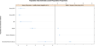 Johnston LG, Prybylski D, Raymond HF, Mirzazadeh A, Manopaiboon C, McFarland W. Incorporating the service multiplier method in respondent-driven sampling surveys to estimate the size of hidden and hard-to-reach populations: case studies from around the world. Sex Transm Dis. 2013;40:304–10. doi:10.1097/OLQ.0b013e31827fd650.