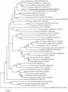 Kaewkla O, Franco CMM (2011) Pseudonocardia eucalypti sp. nov., an endophytic actinobacterium with a unique knobby spore surface, isolated from the surface-sterilized root of a native Australian eucalyptus tree. Int J Syst Evol Microbiol 61:742–746