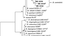 Vinuesa P et al (2005) Bradyrhizobium canariense sp. nov., an acid-tolerant endosymbiont that nodulates endemic genistoid legumes (Papilionoideae: Genisteae) from the Canary Islands, along with Bradyrhizobium japonicum bv. genistearum, Bradyrhizobium genospecies alpha and Bradyrhizobium genospecies beta. Int J Syst Evol Microbiol 55:569–575
