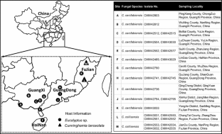 This study was initiated through the bilateral agreement between the Governments of South Africa and China, and we are grateful for the funding via projects 2012DFG31830 (International Science & Technology Cooperation Program of China), 31400546 (National Natural Science Foundation of China: NSFC), 2010KJCX015-03 (Forestry Science and Technology Innovation Project of Guangdong Province of China). We acknowledge members of Tree Protection and Cooperation Programme (TPCP) and the National Research Foundation (NRF), South Africa for financial support. Tao Huang is thanked for assistance with the fieldwork, and Arista Fourie for the help with the cloning of isolates.