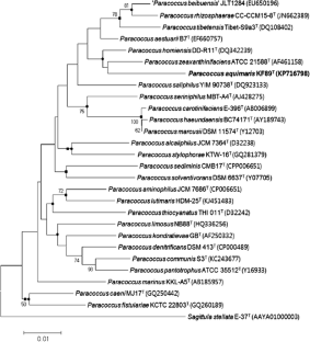 Maximum likelihood tree of strain KF89T and closely related Paracoccus type strains based on 16S rRNA gene sequence comparisons. (PPTX 445 kb)