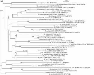 Young JM, Kuykendall LD, Martınez-Romero E, Kerr A, Sawada H et al (2001) A revision of Rhizobium Frank 1889, with an emended description of the genus, and the inclusion of all species of Agrobacterium Conn 1942 and Allorhizobium undicola de Lajudie 1998 as new combinations: Rhizobium radiobacter, R. rhizogenes, R. rubi, R. undicola and R. vitis. Int J Syst Evol Microbiol 51:89–103