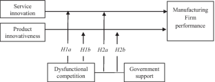 The recent years have witnessed an increasing number of manufacturers in developed markets pursuing service-led innovation to secure their sustainable growth and competitive positions. This study compares the manufacturing firm performance outcomes of two types of innovation activities in the value chain (i.e., service innovation and product innovativeness) contingent on institutional environment but in an aspirant market – China. To do so we conducted two studies: A secondary data study (Study 1) used a longitudinal panel dataset of 1,167 manufacturing firms and a robustness study (Study 2) used primary survey data from 171 manufacturing firms. Both studies offer consistent empirical results that in the dysfunctional competition environment, and in contrast to product innovativeness, service innovation is less effective for manufacturing performance but works more effectively for performance in the complicated institutional environment when government support and dysfunctional competition co-exist. The research contributes to the fields of aspirant markets and innovation by developing our understanding of the firm’s strategic responses pertaining to innovation in the context of a complicated institutional environment, the latter informed by structuration theory. The paper offers a fine-grained view to manufacturing innovation and provides the practical implications for managers and clear guidance to firms and governments in the aspirant markets in regards to innovation practice, strategy, and policy.
