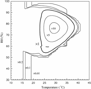 Crowther D, Wilkinson T, Biddulph P, Oreszczyn T, Pretlove S, Ridley I (2006). A simple model for predicting the effect of hygrothermal conditions on populations of house dust mite Dermatophagoides pteronyssinus (Acari: Pyroglyphidae). Exp Appl Acarol 79(2):127–148