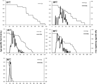 Thrips tabaci Lindeman (Thysanoptera: Thripidae) is one of the most important pests of asparagus in China. In this study the effects of five constant temperatures (15, 20, 25, 30 and 35 °C) on the growth, survivorship and reproduction of Proprioseiopsis asetus (Chant) (Acari: Phytoseiidae) fed on T. tabaci was examined under laboratory conditions. Development time of immatures decreased with increasing temperature. The lower egg-to-adult developmental threshold (T 0) and thermal constant (K) of P. asetus were estimated at 15.2 °C and 75.8 degree days by means of a linear model. Fertilized females fed on T. tabaci produced offspring of both sexes, whereas the offspring sex ratio [♀/(♀ + ♂)] of P. asetus at 20–35 °C was female-biased (0.68–0.78) and not significantly influenced by temperature. Survivorship during immature development was significantly influenced by temperature, and was especially low at 15 °C. Pre- and post-oviposition periods of fertilized females shortened with the increase in temperature. The longest oviposition period was 20.4 days, at 25 °C, whereas at 15 °C the mites did not reproduce. Maximum average life time fecundity and mean daily fecundity was recorded at 25 and 35 °C, respectively; the intrinsic rate of increase ranged from 0.05 (20 °C) to 0.17 (35 °C). The results indicate the capability of P. asetus to develop and reproduce at a broad range of temperatures, especially above 25 °C, which can be used for better management of T. tabaci in asparagus.