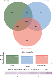Supplementary material 11 (XLSX 480 kb) Supplementary Table S7: : OrthoVenn analysis cluster lists of translated transcripts for Unfed, 3 Hr Fed and 3 Hr Frustrated. The table includes a separate tab for each set of cluster lists found during OrthoVenn analysis of Unfed, 3 Hr Fed and 3 Hr Frustrated translated contigs from assembled transcriptomes. Each row is a protein cluster determined by the OrthoVenn program