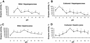 Perera E, Moyano F, Díaz M, Perdomo-Morales R, Montero-Alejo V, Alonso E, Carrillo O, Galich G (2008) Polymorphism and partial characterization of digestive enzymes in the spiny lobster Panulirus argus. Comp Biochem Physiol 150:247–254
