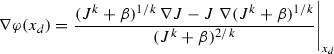 From \(k\beta \, \nabla J = J \;\nabla \beta \) at \(x_c\) it now follows that