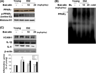 Lim, H.A., Lee, E.K., Kim, J.M. et al. PPARγ activation by baicalin suppresses NF-κB-mediated inflammation in aged rat kidney. Biogerontology 13, 133–145 (2012). https://doi.org/10.1007/s10522-011-9361-4