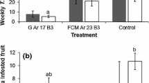 Dimbi S, Maniania N, Lux S, Ekesi S, Mueke J (2003) Pathogenicity of Metarhizium anisopliae Sorokin and Beauveria bassiana Vuillemin, to three adult fruit fly species: Ceratitis capitata, C. rosa var. fasciventris and C. cosyra (Diptera: Tephritidae). Mycopathologia 156:375–382