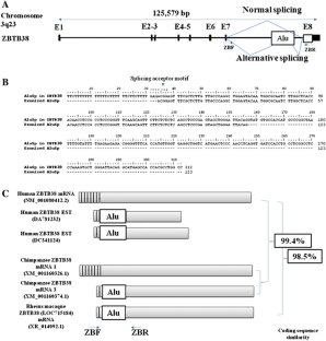 Lev-Maor G, Sorek R, Shomron N, Ast G (2003) The birth of an alternatively spliced exon: 3′ splice-site selection in Alu exons. Science 300:1288–1291