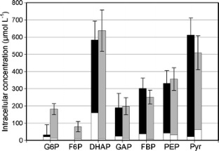 Bhattacharya M, Fuhrman L, Ingram A, Nickerson KW, Conway T (1995) Single-run separation and detection of multiple metabolic intermediates by anion-exchange high-performance liquid chromatography and application to cell pool extracts prepared from Escherichia coli. Anal Biochem 232:98–106