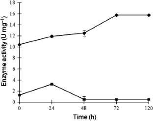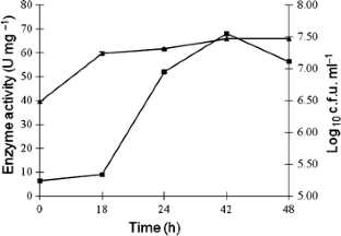 Lactobacillus helveticus, grown at 37°C in MRS medium supplemented with 3 mM cholesterol, assimilated all the cholesterol in 42 h having 68 U mg−1 of intracellular cholesterol oxidase activity. The strain transformed 1 g cholesterol to 0.05 g of androsta-1, 4-diene-3, 17-dione and 0.04 g of androst-4-ene-3, 17 dione within 48 h at 37°C with extracellular cholesterol oxidase activity at 12 U mg−1 and intracellular oxidase at 0.5 U mg−1.