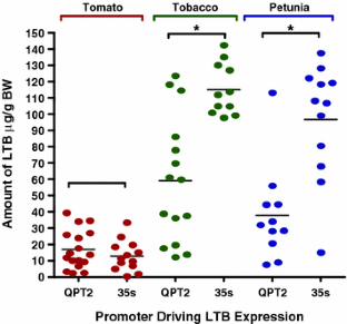 Walmsley AM, Alvarez ML, Jin Y, Kirk DD, Lee SM, Pinkhasov J, Arntzen CJ, Rigano MM, Mason HS (2003) Expression of the B subunit of Escherichia coli heat-labile enterotoxin as a fusion protein in transgenic tomato. Plant Cell Rep 21:1020–1026