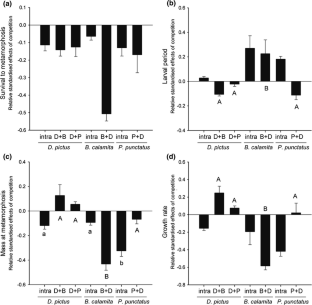 Griffiths RA (1991) Competition between common frog, Rana temporaria, and natterjack toad, Bufo calamita, tadpoles: the effect of competition density and interaction level on tadpole development. Oikos 61(2):187–196