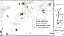 This research was funded by Fundação para a Ciência e a Tecnologia (FCT): in the scope of project “WildGum” (FCT PTDC/AGR-FOR/2471/2012); F. X. C. was supported by a postdoctoral Grant (SFRH/BPD/93373/2013) and A. A. was supported by a Ph. D. Grant (SFRH/BD/76899/2011). We thank Miguel Rocha and Catarina Félix for their collaboration in data collection, and Brad Potts for relevant advices on the methodology. We also thank David Richardson and an anonymous reviewer for their valuable comments.