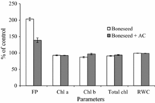 Negative plant–plant interactions through the release of allelochemicals via leaching, decomposition of residues in soil, volatilization and exudation are well established. We aimed to characterise the allelopathic potential of Chrysanthemoides monilifera subsp. monilifera (boneseed) in terms of volatilization and exudation. A series of bioassays compared dose–response to volatilization impacts of boneseed organs on model species Lactuca sativa and associated native Acacia mearnsii with particular reference to investigating physiological and biochemical interference through excessive reactive oxygen species (ROS) production. The impact of boneseed exudates on native Xerochrysum bracteatum and A. mearnsii were investigated in greenhouse. We found significant dose–response impacts of boneseed volatilization in the order of root > leaf > stem on biometric parameters of both of the test species with more significant impact on L. sativa while impact on germination indices was negligible. Hydrogen peroxide, lipid peroxidation and electrolyte leakage in the test species seedlings was increased with increasing doses of boneseed organs, suggesting cellular fragmentation, and a potential mechanism of allelopathic impact through excessive ROS production. Boneseed exudates killed X. bracteatum and inhibited growth parameters of A. mearnsii significantly which was partially reduced by activated carbon treatments. The increase of free proline in A. mearnsii and phenolics in soil, and decrease of soil dehydrogenase activities indicated that boneseed led to a stressed condition in the neighboring species. Our findings help to explain the mechanism of invasion by boneseed and emphasize the importance of mitigating the effects of allelopathy by boneseed to protect native and crop species.