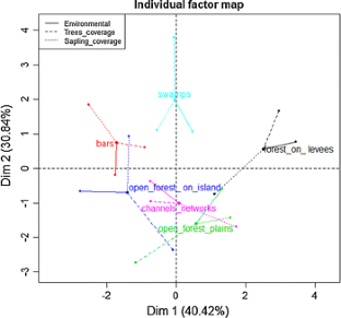 Our study aims to determine the dynamic that led to the spread of exotic Salicaceae on the Limay River floodplain and its implications in shaping the current neoecosystem. We used images obtained by the HRG sensor on board the SPOT-5 satellite. We selected two images dates allowed a comparison of the floodplain under different flooding regimes programmed by the Interjuridiccional Basin Authority, at a rate of 1290 m3/s in Spring and a flow rate of less than 400 m3/s in Summer. To characterize the vegetation cover, the Normalized Difference Vegetation Index (NDVI) was used to compare images of September and December, also the Normalized Difference Water Index (NDWI) was applied to delineate the riverbed and floodplain in September. To evaluate the influence of flooding regime on the detected patches a Principal Component Analysis (PCA), was performed; and biotic and abiotic factors on the composition of the dominant tree species in each patch by Multiple Factor Analysis (MFA) were analized. A 58.4 % coverage of forest patches had developed on the Limay River floodplain. Patches of older trees grew on surfaces at 1.5 m above the water level. However, the surfaces not reached by floods >1.5 m have a very low rocky coverage (1 %). The analysis of the age of the trees downstream of the dam system showed that the vegetation, often exposed to high floods before the dams were built (1971), was composed of the native willow (Salix humboldtiana) and the exotic Salix alba. As the river regime was attenuated and extraordinary floods disappeared with the operation of the dam Arroyito in 1980, the first patches of Populus nigra spread.