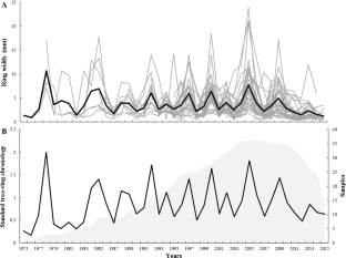 Cook ER, Peters K (1981) The smoothing spline: a new approach to standardizing forest interior tree-ring width series for dendroclimatic studies. Tree Ring Bull 41:45–53