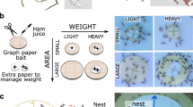 We collected large colony fragments (hereafter, colonies) to ensure that the lab colonies would function normally, given that having insufficient numbers of workers can detrimentally affect tasks such as foraging and territory defense (Burchill and Moreau 2016). Consequently, the lab colonies comprised 300–500 workers and at least one queen. Before the experiment began, all the colonies were maintained under the same constant conditions for 2 weeks to allow the ants time to acclimatize: we kept the room temperature at 23–25 °C, used the photoperiod associated with the month of March in Poland (sunrise about 6 a.m. and sunset about 6 p.m.), and fed the ants a standard Bhatkar-Whitcomb diet (Bhatkar and Whitcomb 1970).