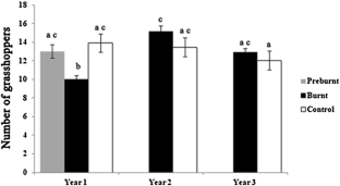 Bock CD, Bock JH (1991) Response of grasshoppers (Orthoptera: Acrididae) to wildfire in a southeastern Arizona grassland. Am Midl Nat 125:162–167