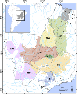 Nogueira C, Ribeiro S, Costa GC, Colli GR (2011) Vicariance and endemism in a neotropical savanna hotspot: distribution patterns of Cerrado squamate reptiles. J Biogeogr 38:1907–1922. https://doi.org/10.1111/j.1365-2699.2011.02538.x