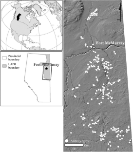 We thank all field staff involved in the collection of data used in this manuscript, including: Kelsey Bernard, Tim Chipchar, Corrina Copp, Silvie Fojtik, Danielle Montgomery, Emony Nicholls, Amy Nixon, Melanie Patchell, Michel Rapinski, Kirsten Tereshyn, Neil Webster, and Taylor Will. Colin Twitchell and others from Innotech Alberta provided logistical support. Tyler Cobb and staff the Royal Alberta Museum provided support with taxonomy and specimen conservation. Shauna-Lee Chai, Lorna Allen, and Joyce Gould assisted with study plot design, and Susy Cote and Monica Kohler provided project management support. This project was part of a collaboration between the Ecological Committee of the Lower Athabasca, the Alberta Biodiversity Monitoring Institute, and the Applied Conservation Ecology Lab at the University of Alberta. Funding: this work was supported by the Alberta Environmental Monitoring and Science Division (formally Alberta Environmental Monitoring, Evaluation and Reporting Agency).