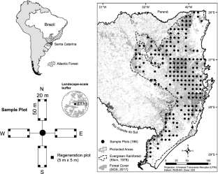 The authors are grateful to Fundação de Amparo à Pesquisa e Inovação do Estado de Santa Catarina (FAPESC) and Serviço Florestal Brasileiro for supporting the IFFSC, to Conselho Nacional de Desenvolvimento Científico e Tecnológico (CNPq) for the research grant 31 (312075/2013-8) awarded to the last author, for the owners of the sampled forests, to the field crews for the enormous efforts invested in data collection, to the taxonomists for identifying the botanical material, to Pedro V. Eisenlohr for his contribution to the statistical analyzes, and to the anonymous reviewers of this manuscript.