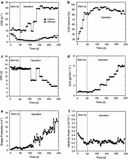 Tequila industries in general produce great volumes of effluents with high pollutant loads, which are discharged (untreated or partially treated) into natural receivers, thus causing severe environmental problems. In this contribution, we propose an integrated system as a first step to comply with the Mexican ecological norms and stabilize the anaerobic treatment of Tequila vinasses with main design criteria: simple and easy operation, reduce operating time and associated costs (maintenance), integrated and compact design, minimal cost of set-up, start-up, monitoring and control. This system is composed of a fully instrumented and automated lab-scale CSTR-type digester, on-line measuring devices of key variables (pH, temperature, flow rates, etc.), which are used along with off-line readings of chemical oxygen demand (COD), biogas composition, alkalinity and volatile fatty acids to guarantee the operational stability of the anaerobic digestion process. The system performance was evaluated for 200 days and the experimental results show that even under the influence of load disturbances, it is possible to reduce the COD concentration to 85% in the start-up phase and up to 95% during the normal operation phase while producing a biogas with a methane composition greater than 65%. It is also shown that in order to maintain an efficient treatment, the buffering capacity (given by the alkalinity ratio, α = intermediate alkalinity/total alkalinity) must be closely monitored.