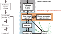 Building on the mechanisms of destabilization described here, we propose to reconsider Schimel and Bennett’s model of soil N bioavailability by incorporating MAOM as a mediator of rhizosphere N transformations and N bioavailability (Fig. 1). In our revised model, SOM is split into particulate and soluble pools. Particulate SOM consists of polymeric compounds—essentially plant litter—which must be enzymatically degraded by microbes in order to release soluble components that can be accessed. The soluble pool contains some polymers, such as protein oligomers, and monomers, such as amino acids (Warren 2013). This retention of smaller soluble SOM compounds by mineral surfaces can restrict their accessibility to microbes and plants. Byproducts from microbial turnover can accumulate on surfaces and so contribute to further building MAOM (Grandy and Neff 2008). However, plant root exudates can remobilize MAOM into the soil solution, thus making SOM “free” and accessible to microbes (and their enzymes) and to plants.