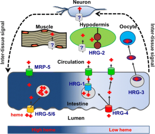 Chen C, Samuel TK, Krause M, Dailey HA, Hamza I (2012) Heme utilization in the Caenorhabditis elegans hypodermal cells is facilitated by heme-responsive gene-2. J Biol Chem 287:9601–9612. doi:10.1074/jbc.M111.307694