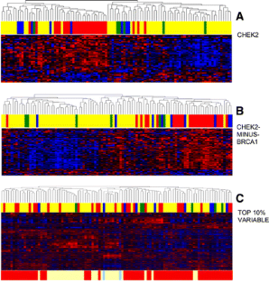 Hedenfalk I, Duggan D, Chen Y, Radmacher M, Bittner M, Simon R, Meltzer P, Gusterson B, Esteller M, Kallioniemi OP, Wilfond B, Borg A, Trent J (2001) Gene-expression profiles in hereditary breast cancer. N Engl J Med 344(8):539–548