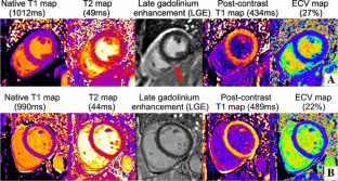 Moon JC, Messroghli DR, Kellman P, Piechnik SK, Robson MD, Ugander M, Gatehouse PD, Arai AE, Friedrich MG, Neubauer S (2013) Myocardial T1 mapping and extracellular volume quantification: a Society for Cardiovascular Magnetic Resonance (SCMR) and CMR Working Group of the European Society of Cardiology consensus statement. J Cardiovasc Magn Reson 15(1):92