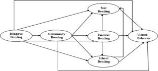 The aim of this study is to test a multifaceted model across gender, consisting of bonding systems in relation to violent behaviors of youth and explaining the relationships among them. The National Survey on Drug Use and Health in 2006 was the source of data. This paper reports findings of a study examining gender-sensitive models with adolescent violent behavior, by testing multiple bonding systems in the adolescents’ environment simultaneously with use of (1) bi-variate statistical test, (2) t test, and (3) estimation of the structural equation modeling among all the concepts of violent behavior and bonding systems for the whole juvenile sample and separated sample of male and female juveniles. Both peer bonding and school bonding have an effect in decreasing violent behavior of both male and female youth. However, some different bonding systems were found to be effective only for a certain gender, community bonding for male youths and parental bonding for female youths. The satisfactory model fit was confirmed with whole, male-only, and female-only samples, along with new findings of several male-only and one female-only significant causal linkage among bonding systems.