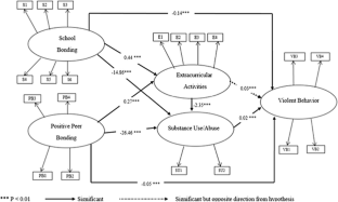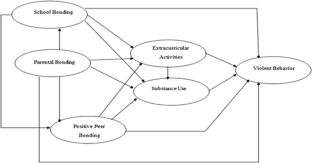 The purpose of this research was to examine a conceptual/theoretical model with negative (substance use) and positive (extracurricular activities) mediating factors between several bonding systems and violent behavior among female youth. Since much of the prior researches have focused on both males and females therefore this study is focusing on females only. Data from the 2011 National Survey on Drug Use and Health was used for this study. For the purpose of this study female research participants between the age of 12–17 were selected (N = 9383). At the stage of bivariate analysis, parental bonding system was omitted from a model before moving onto a structural equation modeling (SEM) analysis as most of the correlations between indicators of parental bonding systems and dependent variables were not significant. Revised model with two bonding systems on violent behavior through two mediating constructs, extracurricular activities and substance use were tested through the SEM and Sobel test analyses. This structural model specifies a satisfactory fit with the sample. Several mediating effects within this model, which help lower the occurrence of violent behavior, were also validated.