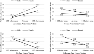 This study conducts a focused exploration on adolescents specific peer norms of valuing working, academics, being social, and volunteering, and highlights the influence perceived peer norms can have in facilitating or inhibiting academic achievement. These findings inform our awareness of the influence perceived peer norms may have on adolescent achievement and may inform future investigations that seek to incorporate perceived peer norms as intervention components aimed at promoting proximal learning opportunities for students.