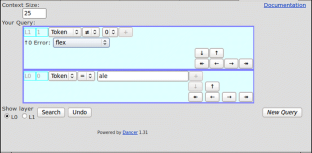 Two annotation layers, each with error labels belonging to categories of several types, are used also by Dickinson and Ledbetter (2012) in an annotation scheme for Hungarian. However, the two layers are used for a slightly different purpose, namely to distinguish between corrections of errors detectable directly in the learner text and adjustments of the text, needed because of the corrections.