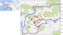 Alaska’s landscape presents unique challenges that have shaped wildfire suppression policies. Boreal forest covers about 60% of the state (Markon et al. 2012) and is dominated by black spruce (Picea mariana), a highly flammable tree species that has contributed to the burning of hundreds of thousands of hectares annually in recent decades (AICC 2016; Todd and Jewkes 2006). The vast size of the boreal forest and limited road network across Alaska make fire suppression logistically difficult and costly, especially in remote areas, where lightning-caused fires are common (Todd and Jewkes 2006). Wildfire suppression in Alaska formally began 1939, and in the early years, focus was placed on suppression and prevention of as many fires as possible, despite very limited resources (Todd and Jewkes 2006). Over time, the impracticality of fighting all fires in Alaska, evolving US fire policy, and improved understanding of the ecological importance of fire, contributed to a shift towards wildfire management instead of simply suppression and prevention. In the 1980s, fire management options (FMOs) were introduced and are currently in use by fire agencies in Alaska. Wildfire agencies and landowners designate lands into four FMOs—Critical, Full, Modified, and Limited—which prioritize the allocation of resources and inform unique response protocols (AICC 2016; AIWFMP 2010) (Table 1). Land assignment to an FMO is based on many factors including public and firefighter safety, existing policies, property value, natural and cultural resources, environmental health and sustainability, and potential suppression costs (AIWFMP 2010). Land designation to each FMO is revised annually, to reflect changes in the location of valuable property and in consideration of where fire occurrence many improve habitat for wildlife (Trainor et al. 2009). Because of the uneven distribution of Alaska’s population and high-value property, there are considerable differences in location of the total land area within each FMO (see FMO designation map at http://fire.ak.blm.gov/content/maps/aicc/Alaska_Fire_Management_Options.pdf). Critical areas receive the highest priority yet comprise the smallest land area (about 1.3 M ha), while Limited areas—where fires are rarely fought—cover the largest portion of the state, totaling over 106 M ha (Table 1).