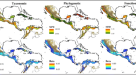 where Adj is the remaining suitable climate area for species j after climate change, Aoj is the suitable climate area for species j in original situation without climate change, and S is the number of species. FRA is also a relative index between 0 (no original suitable climate area) and 1 (suitable climate area unchanged).