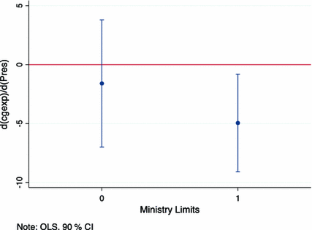 It is important to mention that the mechanisms behind the role of budget institutions in Blume and Voigt (2013) and this article come from different sources. In Blume and Voigt the mechanism is similar to the one in the traditional budget institutions literature where institutional constraints reduce the ability of the actors to inflate budgets for political gain. In this article, while we also acknowledge their traditional effect, the key—and novel—factor is their role reducing the separation of powers and, hence, affecting politician’s incentives at the margin in terms of the size of government expenditures.