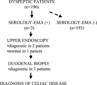 Bardella MT, Minoli G, Ravizza D, Radaelli F, Velio P, Quatrini M, Bianchi PA, Conte D (2000) Increased prevalence of celiac disease in patients with dyspepsia. Arch Intern Med 160:1489–1491