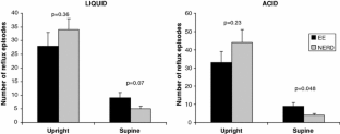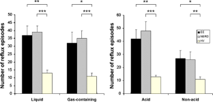 Frazzoni M, De Micheli E, Savarino V (2003) Different patterns of esophageal acid exposure distinguish complicated reflux disease from either erosive reflux esophagitis or non-erosive reflux disease. Aliment Pharmacol Ther 18:1091–1098
