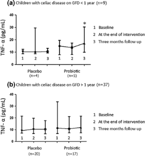 Smecuol E, Hwang HJ, Sugai E, et al. Exploratory, randomized, double-blind, placebo-controlled study on the effects of Bifidobacterium infantis natren life start strain super strain in active celiac disease. J Clin Gastroenterol. 2013;47:139–147.
