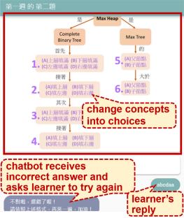 With the development of science and technology, the demand for programmers has increased. However, learning computer programs is not an easy task. It might cause a significant impact on programming if misconceptions exist at the beginning of the study. Hence, it is important to discover and correct them immediately. Chatbots are effective teaching aids, they can assist students in eliminating misconceptions. They also assist teachers to instruct students according to their aptitude, which teachers found it hard to accomplish without technical supports when teaching in large classes. Therefore, this experiment uses chatbots to assist learners in the correction phase. We consider that learners who failed unit quizzes might have misunderstandings in programming concepts. We believe chatbots can teach according to individual misunderstandings and give correct responses to their unclear concepts. It is more effective than traditional teaching methods. In addition, to prevent human-computer interaction barriers, such as picking wrong keywords and giving plausible replies, or learners not being able to express their problems clearly, this experiment also adds concept maps to the chatbots’ dialogue, to work as the dialogue structure for each chatbot. The maps help the chatbots to explain concepts in each unit systematically and logically. The chatbots give questions according to the concepts on the concept maps and ask learners to reply with their answers. An ANCOVA test investigated students’ scores. Result showed the p-value is below 0.001, indicating that the group using concept map chatbots has better correction effects than the other group using only concept maps.