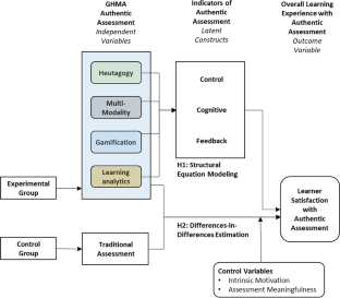 There are known issues in authentic assessment design practices in digital education, which include the lack of freedom-of-choice, lack of focus on the multimodal nature of the digital process, and shortage of effective feedbacks. This study looks to identify an assessment design construct that overcomes these issues. Specifically, this study introduces an authentic assessment that combines gamification (G) with heutagogy (H) and multimodality (M) of assessments, building upon rich pool of multimodal data and learning analytics (A), known as GHMA. This is a skills-oriented assessment approach, where learners determine their own goals and create individualized multimodal artefacts, receive cognitive challenge through cognitively complex tasks structured in gamified non-linear learning paths, while reflecting on personal growth through personalized feedback derived from learning analytics. This pilot research looks to: (i) establish validity of all elements within the assessment design, and (ii) identify if application of assessment design leads to improved learner satisfaction. Results showed positive validations of all key elements of the GHMA assessment model, as beneficial factors tied to positive learner satisfaction on assessment delivery. There existed statistically significant post- and pre-treatment differences between experimental and control group satisfaction levels, indicating positive receptivity of GHMA authentic assessment design in digital education.