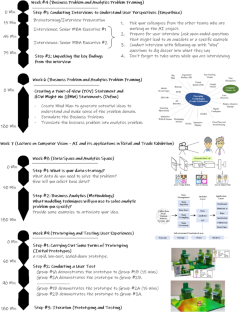 The philosophy for information system (IS)-related projects, such as artificial intelligence (AI) projects, embodies systematic and scientific approaches, that encompass the development, use, and applications of IS by focusing on the interactions among individuals, organizations, and society. However, many organizations still need to learn more about such approaches to ensure the success of AI projects. Design Thinking offers an opportunity to transform the way organizations design and develop strategies by integrating a human point of view with the possibility of implementing emerging technologies. The practice of Design Thinking provides some tools and methods for the problem-solving aspects of the development and implementation of AI initiatives. Bringing Design Thinking to AI projects is worth exploring, especially in bridging the creativity gap in terms of user-centric, innovative mindsets and toolsets. How can Design Thinking be embedded in the learning processes and enabled in the context of AI projects in the classroom environment? This study presents a technological data-driven design approach to provide an overview of the most important points and directions for an organization’s AI strategy in the proof-of-concept stage. A case study of AI initiatives utilizing computer vision (CV)–AI to improve analytical solutions for trade exhibitions is presented to capture the ideas and solutions and depict the practicability and implications of our proposed framework. The results of this study show that Design Thinking practices can be enlisted to help students frame their creations and that these practices have a valuable contribution as alternatives when designing AI-related curricula for teaching and learning.