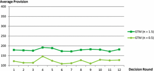 We deliberately choose M = 120 (and not 100). The choice of 100 is “focal” and can potentially lead a participant to a focal 50–50 allocation of her budget between \(y_i \) and \(g_i \). See Goeree and Holt (2005) for a similar approach.