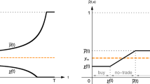 The payoff of not selling the permits in the current period is equal to producing with the permits in the next period, \(\delta \pi ^{1} Q\), while looking for a trading partner. The search process results in meeting a trading partner with probability \(\alpha\). The probability of trade can increase but it’s costly, \(g(\alpha )\). After meeting the potential buyer, a price is realized from the distribution \(F(\omega )\). This is the price offered by the potential buyer to the seller. If the payoff from selling the price is greater than the payoff of not selling the permits, the seller will sell the permits and the payoff of the next period will be \(W_s(\omega )\). Otherwise, if the payoff of selling the permits is less than that of not selling the permits, the seller will wait another period to sell their permits and receive a payoff of \(U_s\) in the next period.